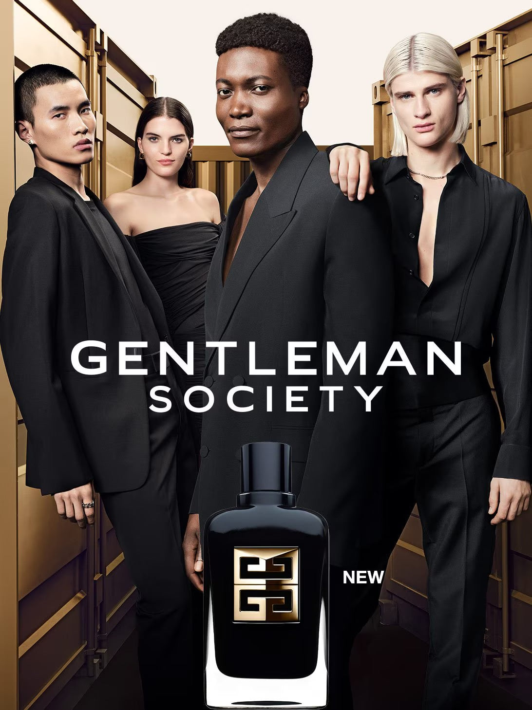 تتزيّن قارورة "جنتلمان سوسايتي" الأيقونية باللون الذهبي، لون النجاح والجرأة، مع شعار مذهّب جديد يضفي لمسة من الرقي. لقاء جريء بين الفخامة والخلود، يُجسّد عطرًا ملؤه الثقة وتميز الشخصية. دعوة للتعبير بحرية عن حسيّتكم وتفرّدكم.
