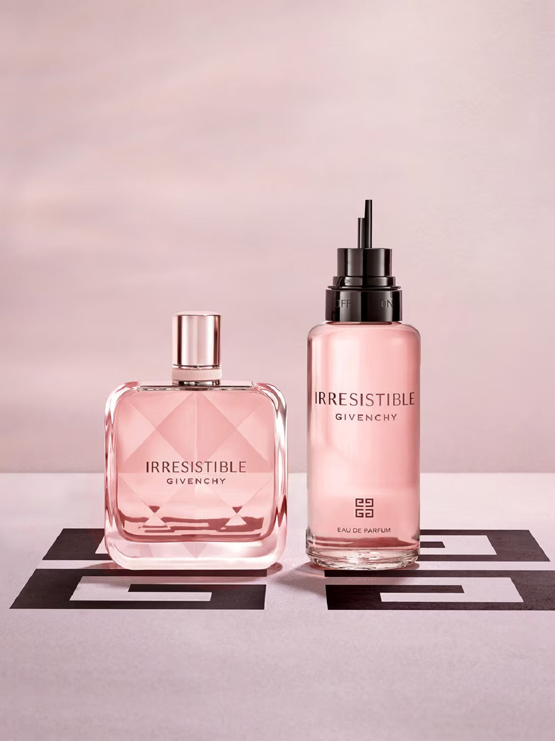 Fall for the luminous attraction of Irresistible Eau de Parfum now refillable in a new 100ml format. Choose the new Irresistible Eau de Parfum's eco-friendly gesture and easily refill it with the 150ml Irresistible Eau de Parfum refill.