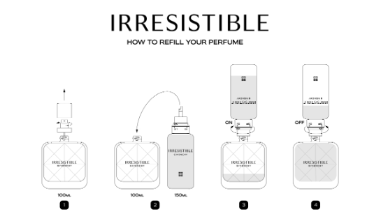 Irresistible Eau de Parfum is now available in a 100ml refillable bottle with its 150ml refill glass bottle. With this innovation, the bottle can be refilled quickly, easily, and precisely.